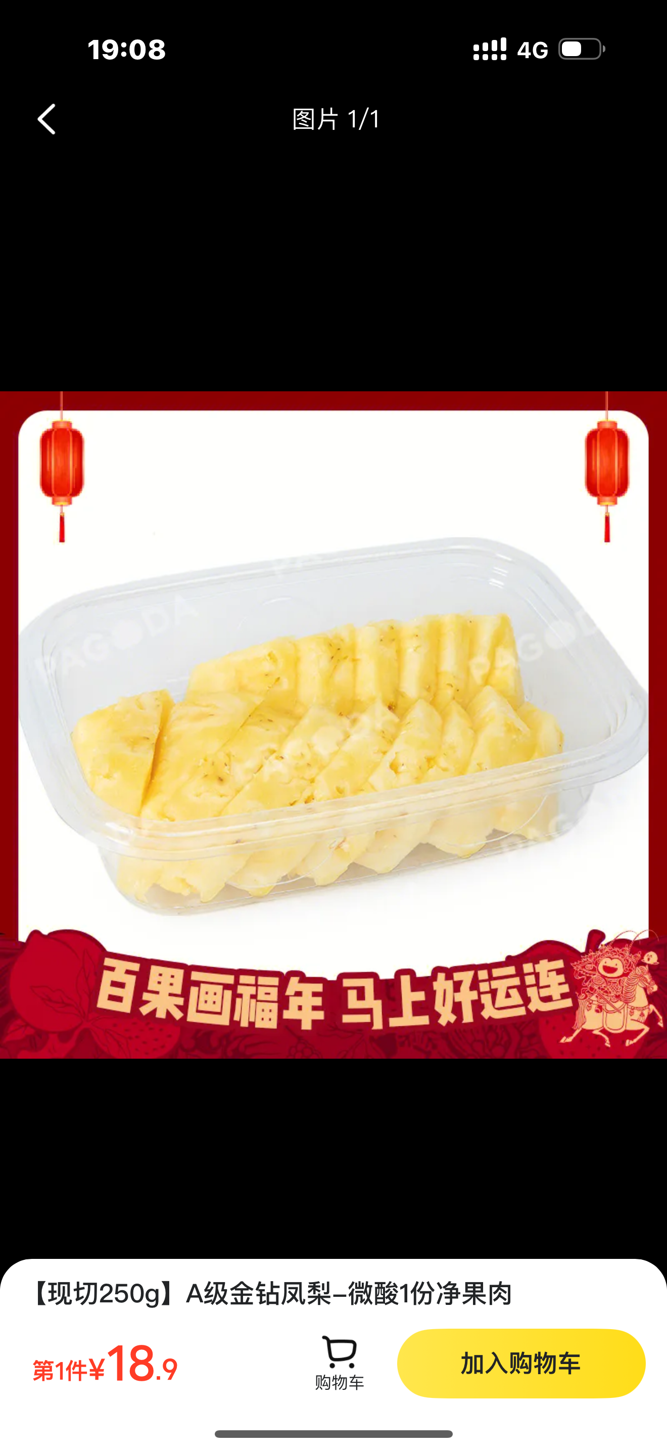 【现切250g】A级金钻凤梨-微酸1份净果肉