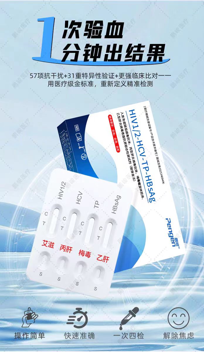 梅毒检测试纸四项传染病测试卡四项筛查剂盒自检艾滋梅毒四合一